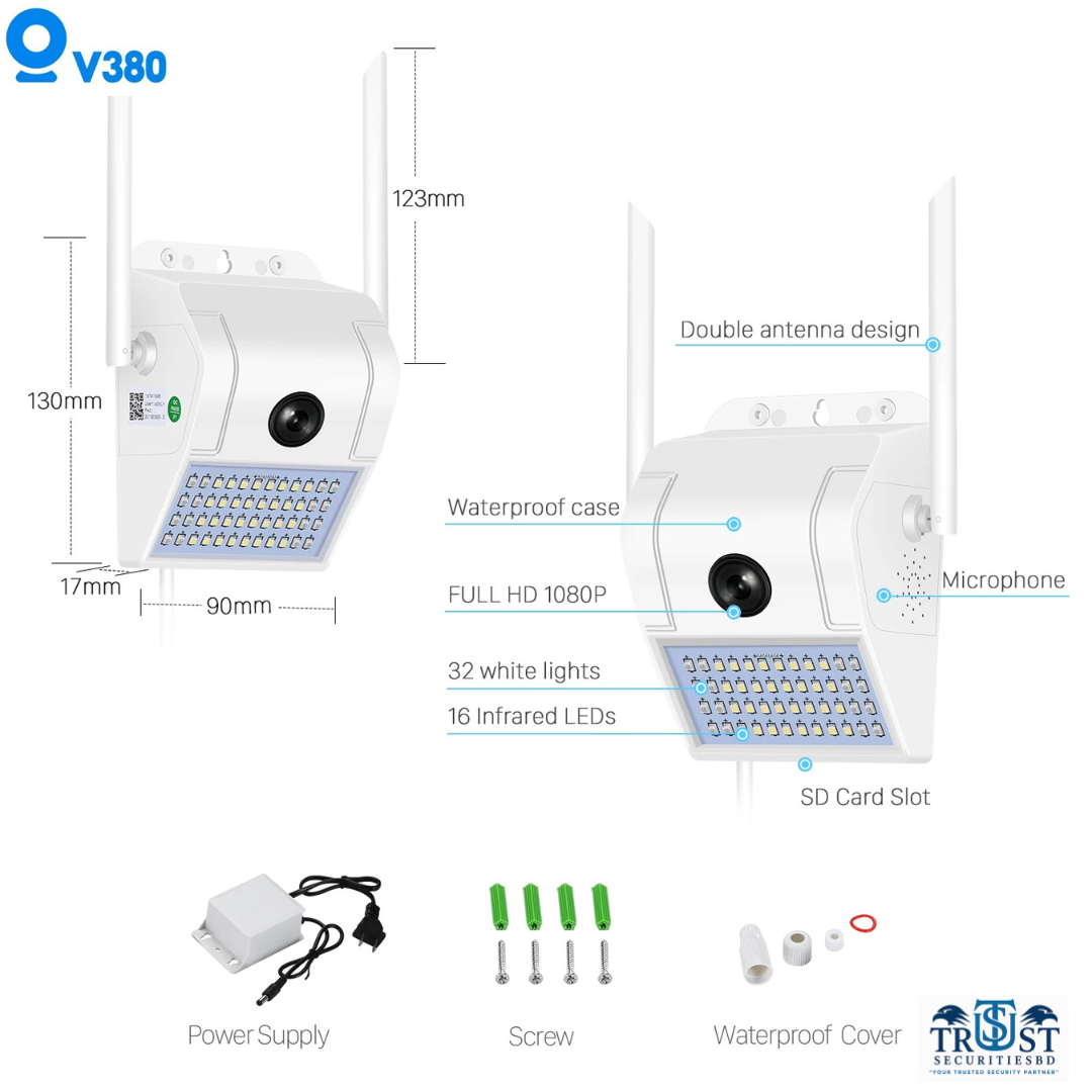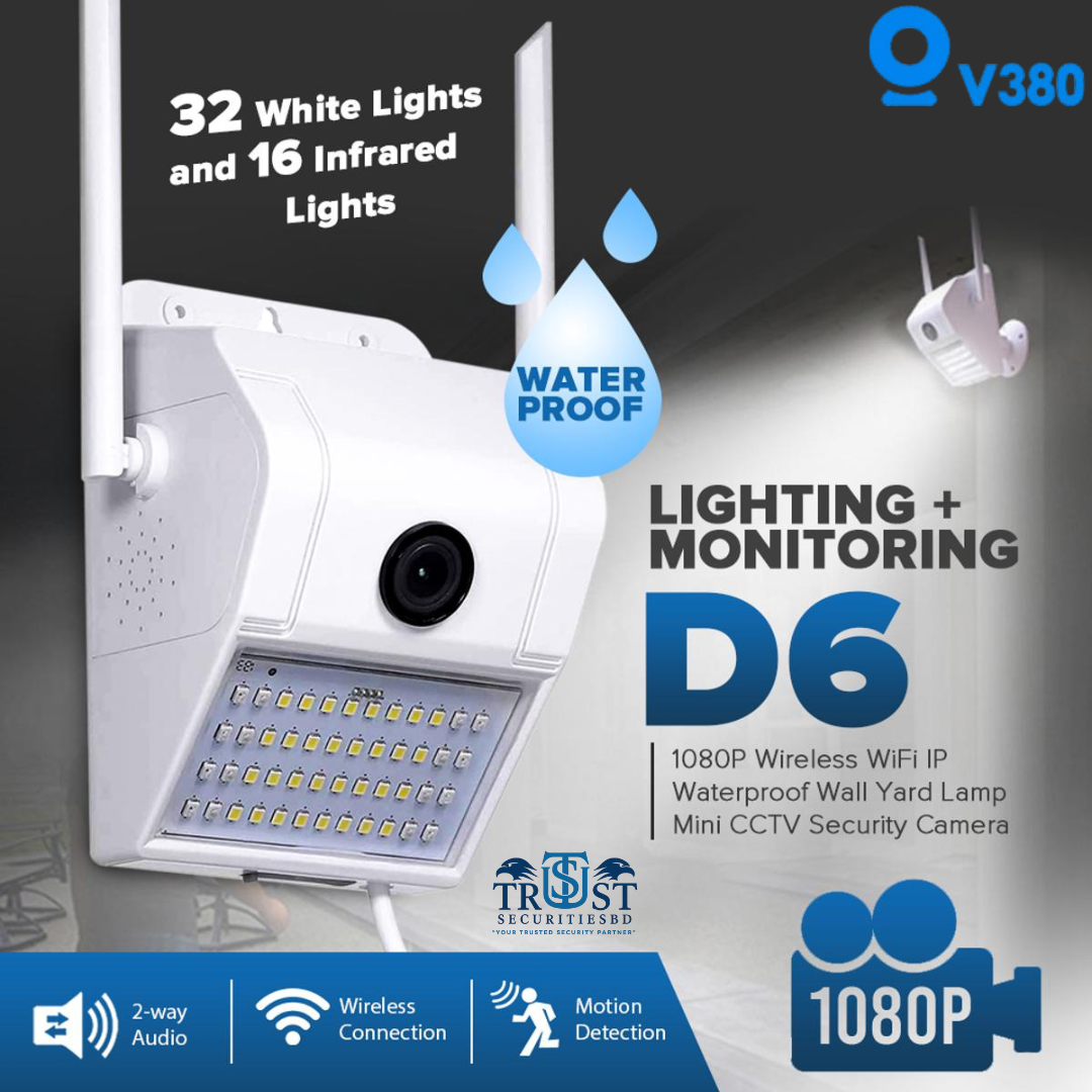এই Wall Lamp WiFi Camera V380 হলো একটি আধুনিক নিরাপত্তা সমাধান যা বাতির রূপে সহজেই দেয়ালে স্থাপনযোগ্য এবং গোপনে নজরদারির জন্য আদর্শ। এতে বিল্ট-ইন WiFi IP ক্যামেরা রয়েছে যা V380 বা V380 Pro অ্যাপের মাধ্যমে রিয়েল টাইমে ভিডিও মনিটরিং করতে সাহায্য করে।